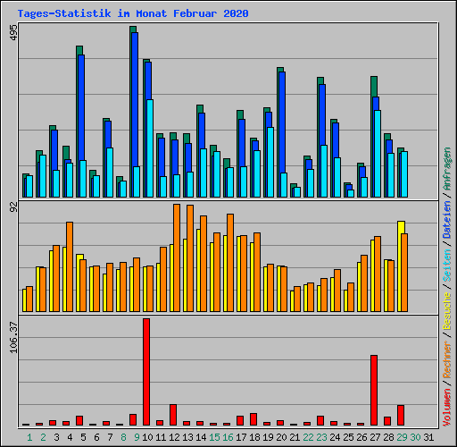 | Tag | Anfragen | Dateien | Seiten | Besuche | Rechner | Volumen | ||||||