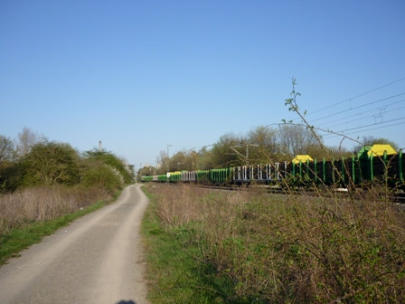 Eisenbahnlängsweg zur Anderter Straße - Rundholzgüterzug