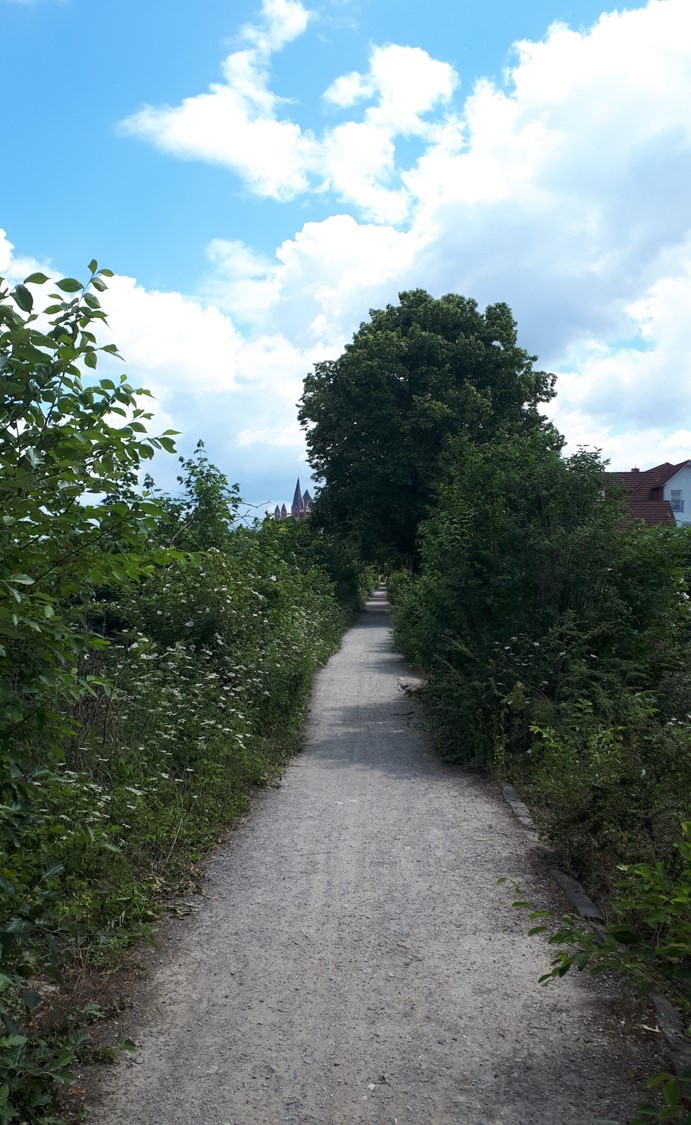 Ab hier war der Weg einigermaßen ausgeschildert und ich kam gut voran. Zum ersten Mal traf ich nun auch andere Pilger; einen Isländer mit seiner deutschen Begleiterin und auch sie waren durch die zweideutige Beschilderung etwas irritiert. Wir trennten uns und durch die verwirrende Beschilderung auch unterwegs, wir trafen uns in Braunfels wieder.