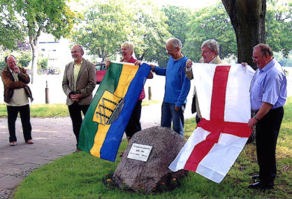 Am Gedenkstein 50 Jahre Städtepartnerschaften